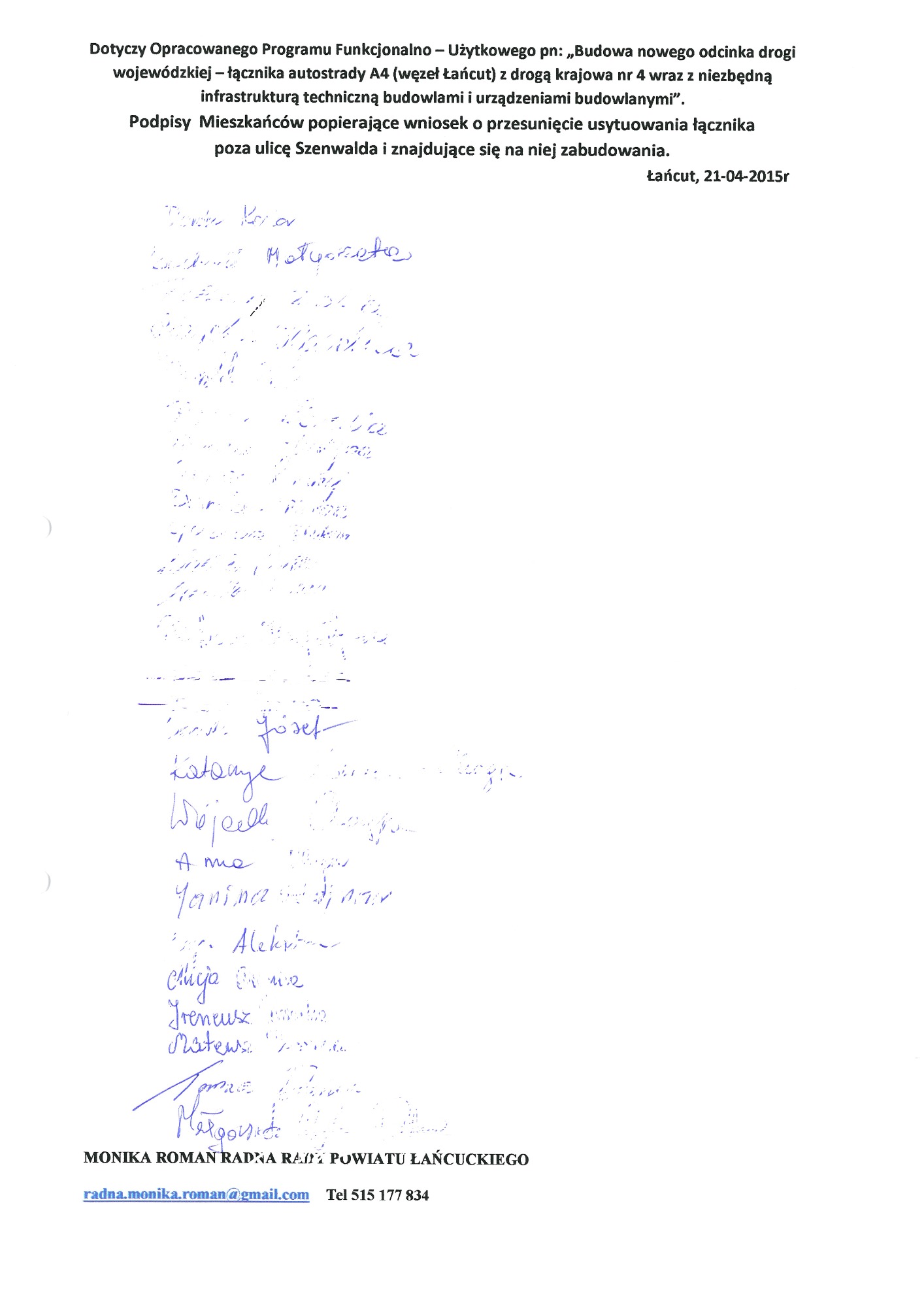 Łącznik jest potrzebny miastu takiemu jak Łańcut, ale w przemyślanej lokalizacji; która nie zablokuje drogi krajowej i będzie bezpieczna dla rodzin - Mieszkańców domów jednorodzinnych. Łącznik powinien wychodzić na drogę krajową w miejscu, gdzie ma ona cztery pasy, a nie dwa, tak jak obecnie został on zaprojektowany ! Burmistrz pan Stanisław Gwizdak i zastępca burmistrza pani Joanna Rupar otrzymali od Urzędu Marszałkowskiego Województwa Podkarpackiego szanse na opracowanie innego wariantu przebiegu łącznika. Niestety z tej szansy nie skorzystali, ponownie zgłosili do realizacji ten sam wariant przebiegu łącznika z niewielkimi przesunięciami.