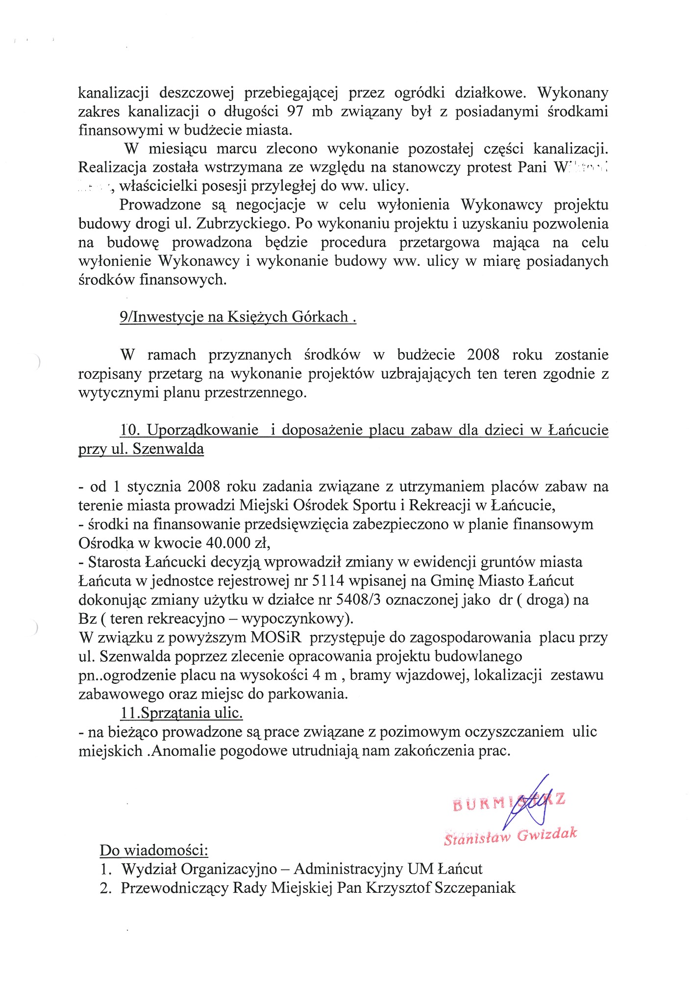 W poprzednich latach wnioskowałam również o zamontowanie progów zwalniających na ulicach miejskich: Stanisława Moniuszki i Polnej. Podjęłam wiele interwencji w sprawie zmiany organizacji ruchu na ulicy Stanisława Moniuszki. Niektóre wnioski czekały na realizację ponad dziesięć lat.
