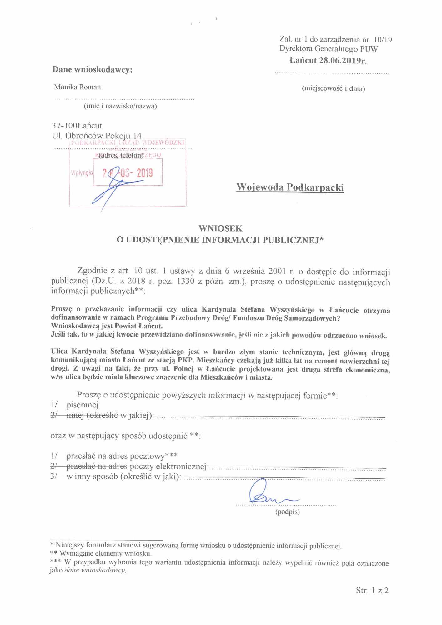 Wniosek o przebudowę tej ulicy, po raz pierwszy złożyłam w 2015 roku.