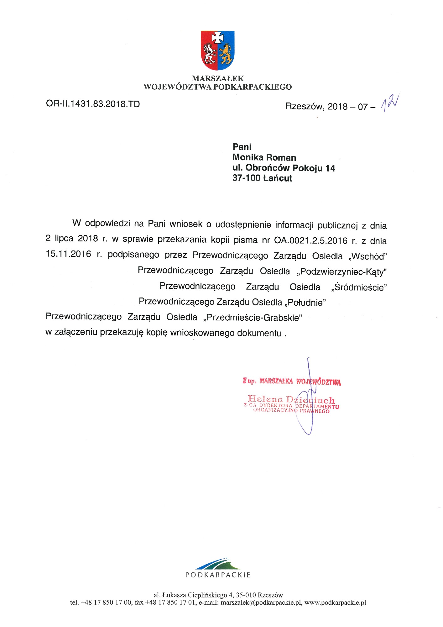 Sytuacja na Osiedlu „Podzwierzyniec – Kąty”, przede wszystkim huk i ogromne korki spowodowane przez samochody ciężarowe, jest wynikiem ulokowania w tej dzielnicy, strefy ekonomicznej. Kilka lat temu, gdy lokowano strefę ekonomiczną, tłumaczyłam burmistrzowi Panu Stanisławowi Gwizdakowi i zastępcy burmistrza Panu Henrykowi Pazdanowi, że nie planuje się stref ekonomicznych w dzielnicach mieszkaniowych. Wyjaśniałam, że strefa ekonomiczna powinna być umieszczona na obrzeżach miasta z dojazdem do czteropasmowej drogi. Proponowałam, aby miasto zawarło porozumienie z powiatem i ulokowano strefę na styku Łańcuta z Krzemienicą - tam gdzie obecnie firmy samodzielnie budują hale i zakłady. Dla mnie - jako prawnika z doświadczeniem w instytucji zajmującej się rozwojem regionalnym sytuacja, która ma obecnie miejsce na Osiedlu „Podzwierzyniec – Kąty” była do przewidzenia na etapie lokowania strefy ekonomicznej!
