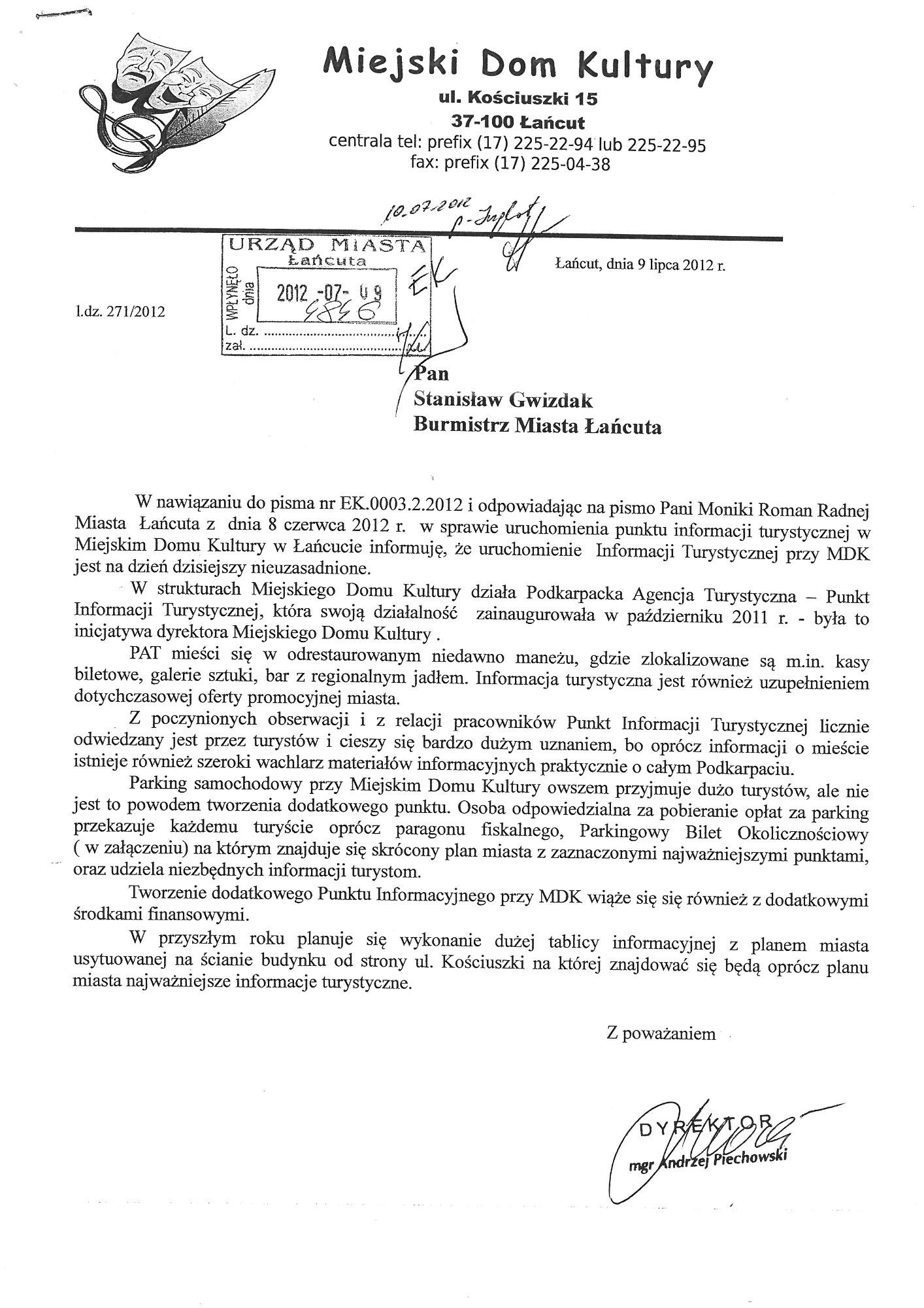 Obecnie bardzo boli mnie fakt, że turyści przyjeżdżający do Łańcuta, szukają Muzeum - Zamku i zadają pytania, a gdzie jest Zamek, ponieważ w ogóle go nie widać !