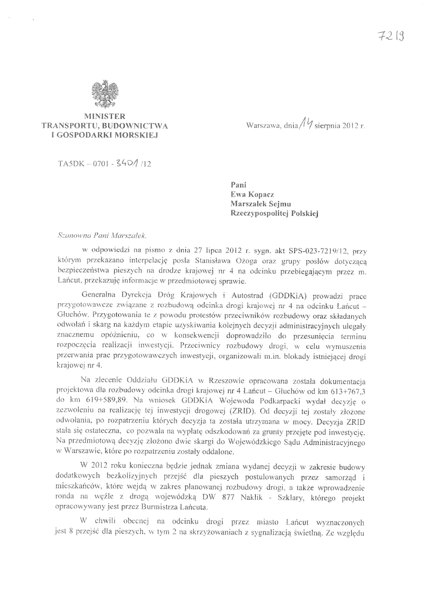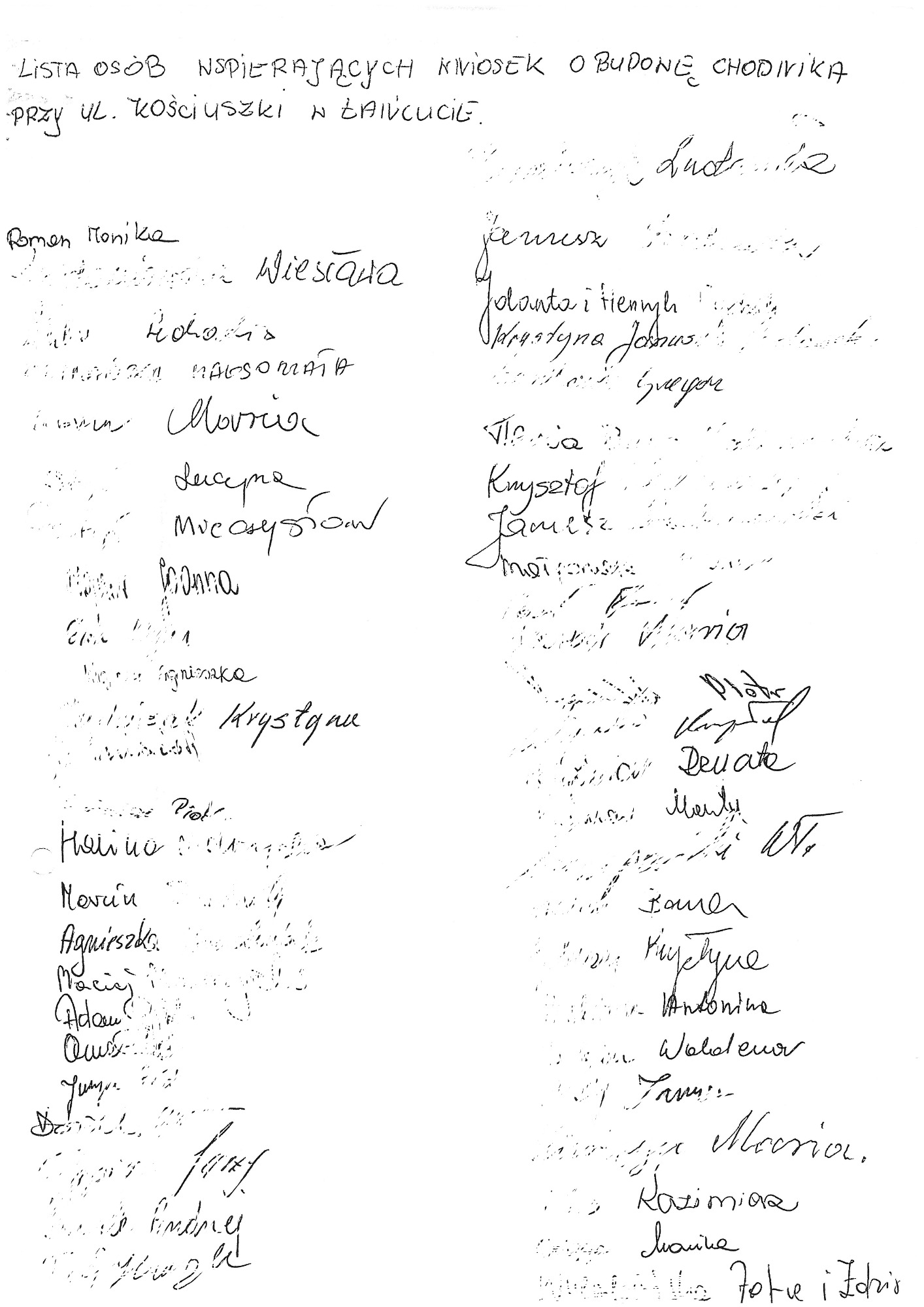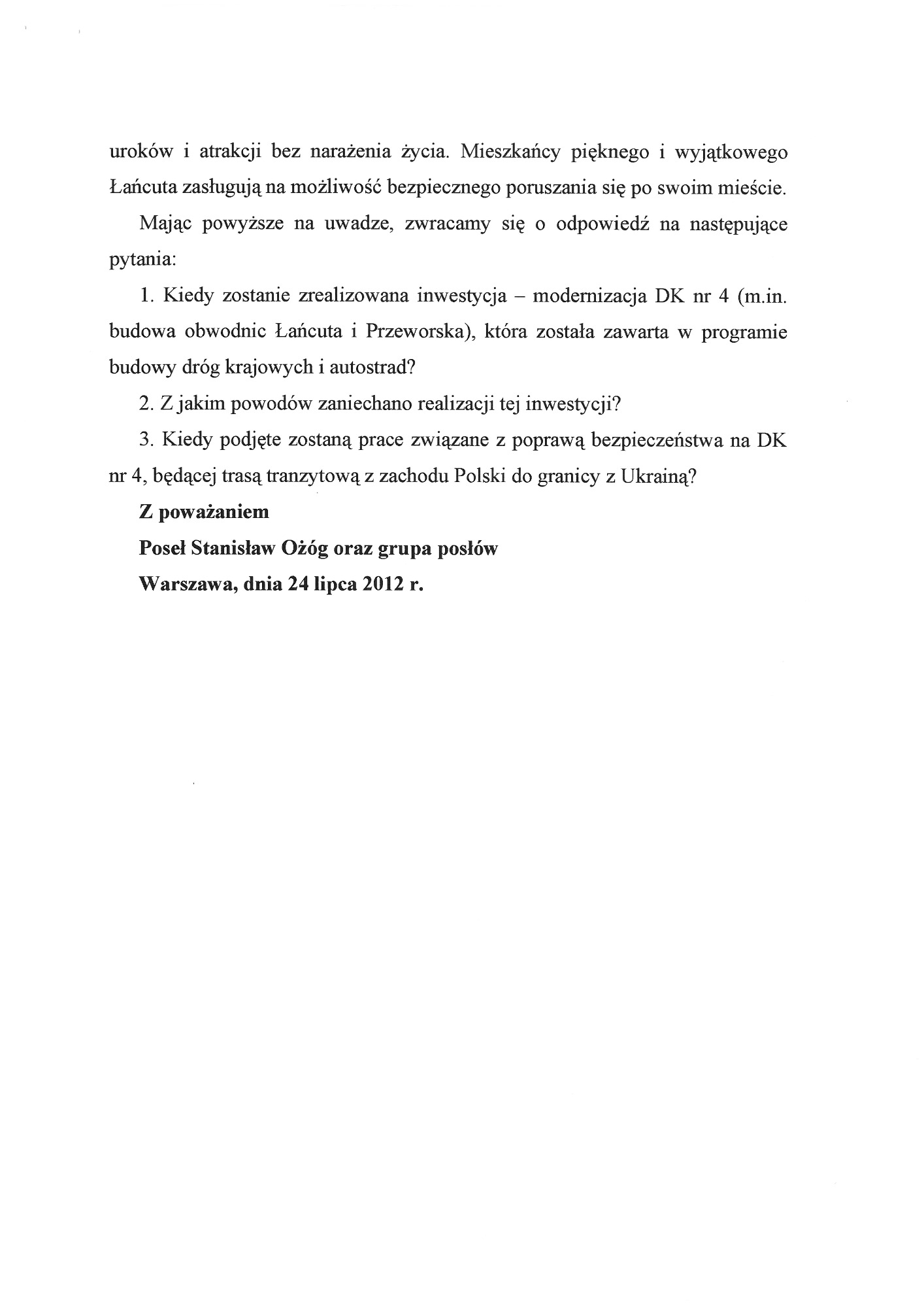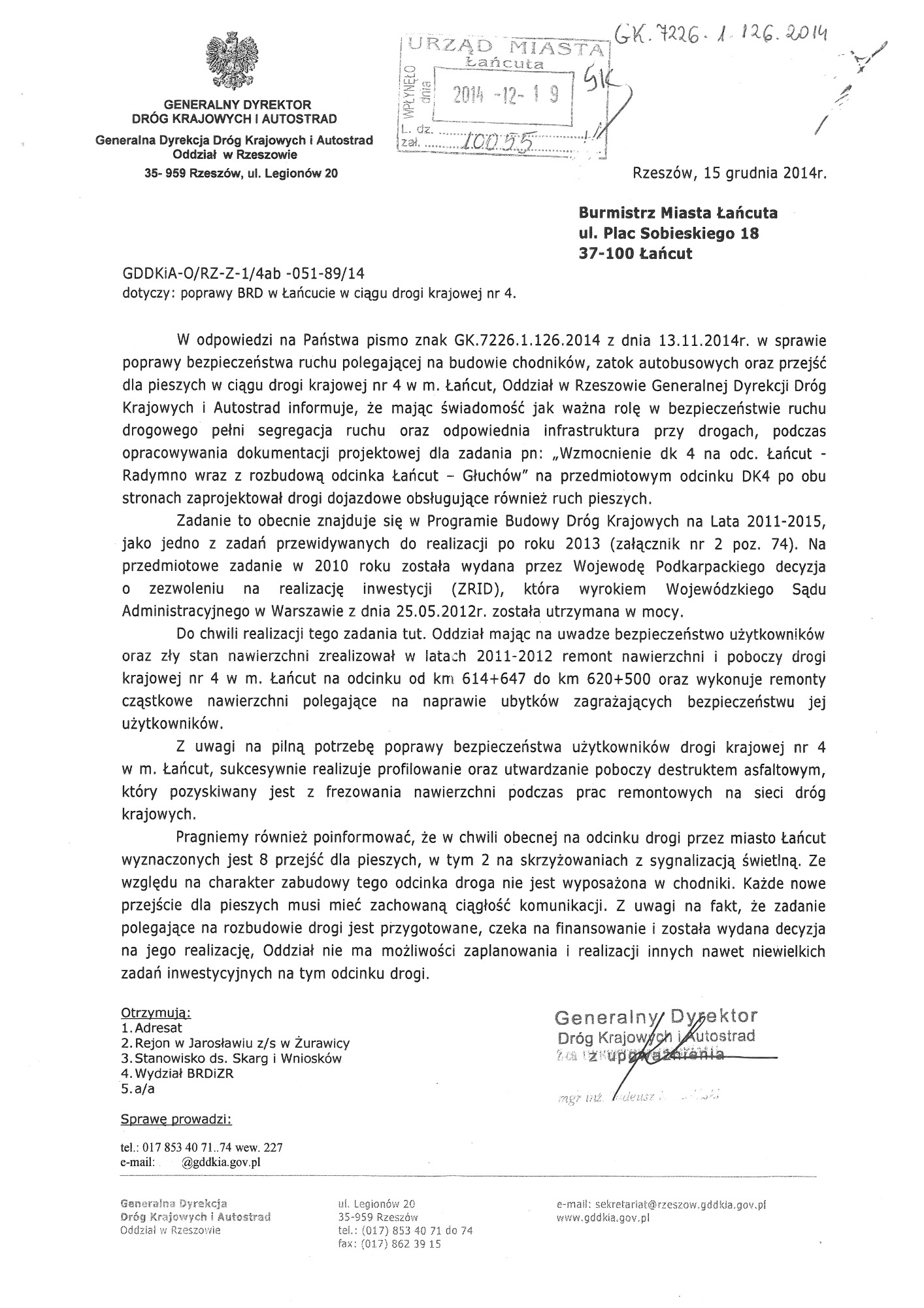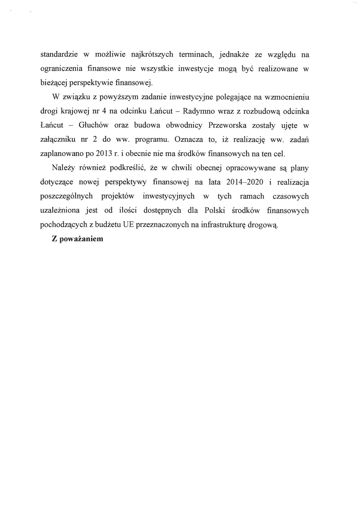 Proszę o zapoznanie się z apelami, wnioskami, pismami. W dokumentach znajdują się również skany kart z podpisami Mieszkańców, które dwukrotnie osobiście zebrałam i przekazałam do Generalnej Dyrekcji Dróg Krajowych i Autostrad oddział w Rzeszowie. Podpisy zostały zanonimizowane z uwagi na wymogi stawiane przez znowelizowaną ustawę o ochronie danych osobowych.